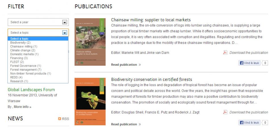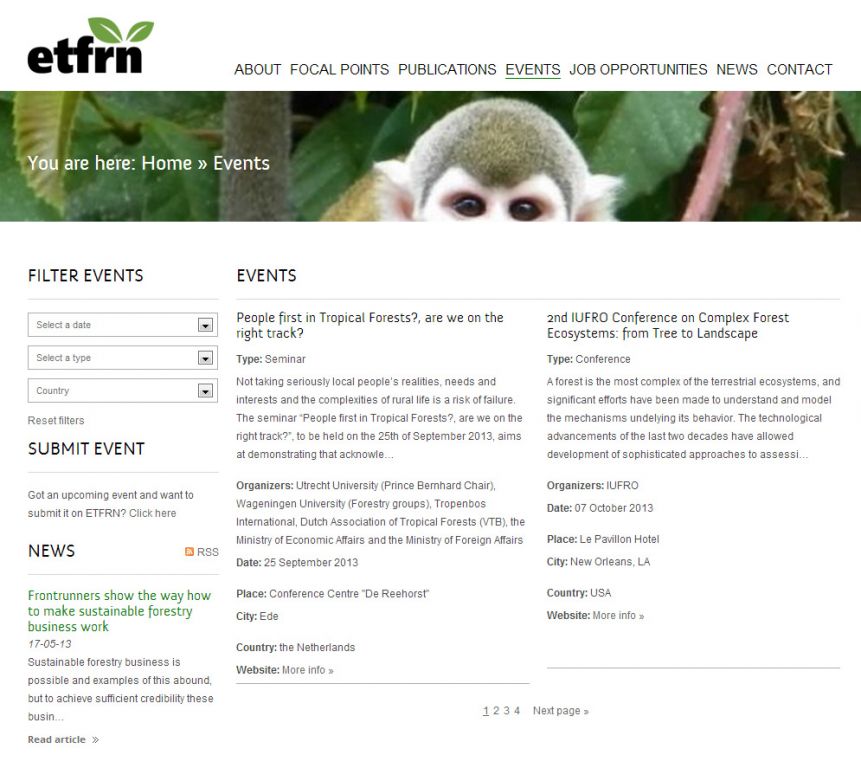 In de nieuwe website ETFRN.org worden veel publicaties en evenementen getoond. Door eenvoudige filters, en het automatisch verversen van de inhoud, kan de gebruiker snel zien welke informatie beschikbaar is. Daarnaast wordt er een korte omschrijving getoond zodat er eenvoudig een keuze kan worden gemaakt.